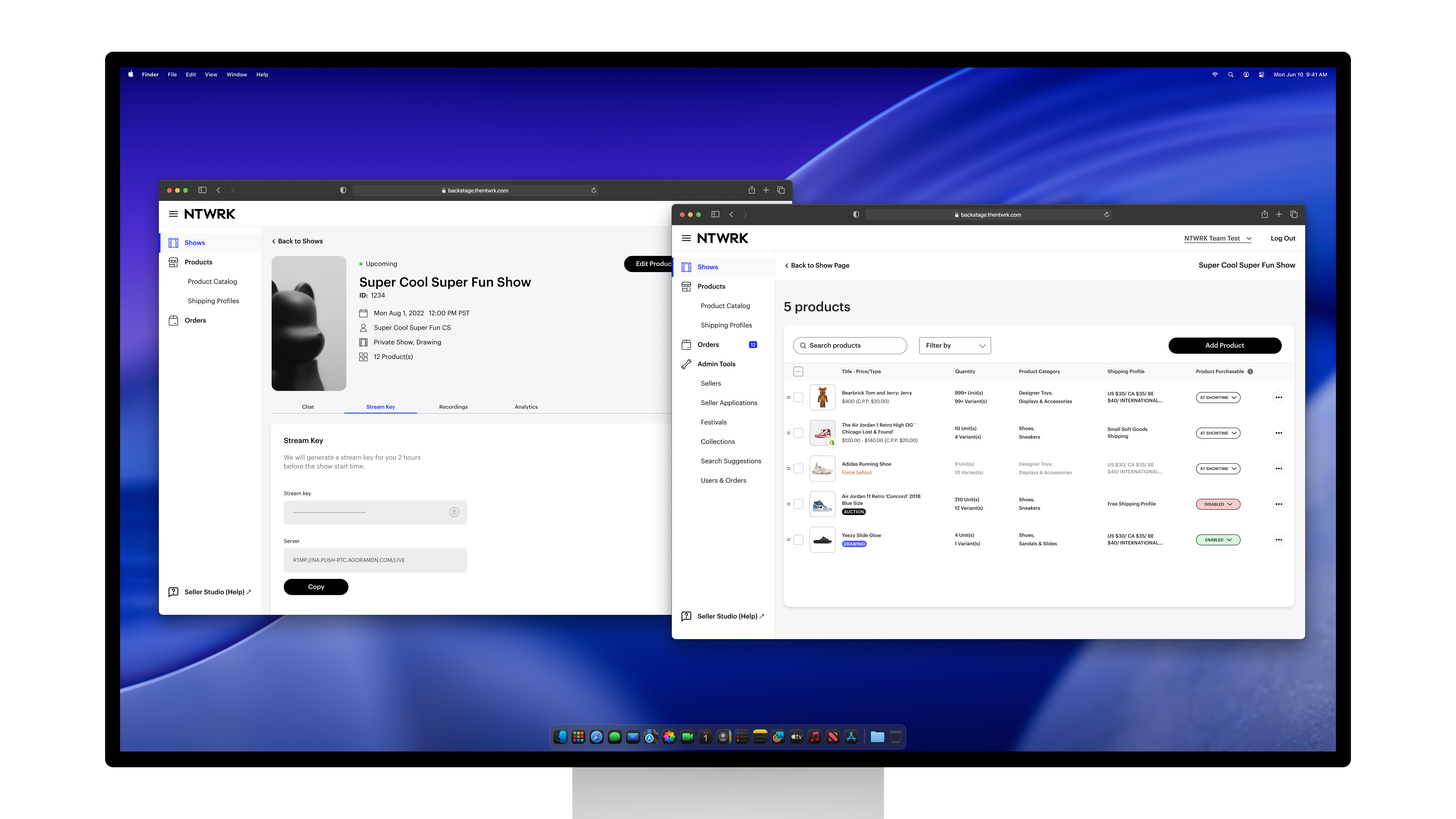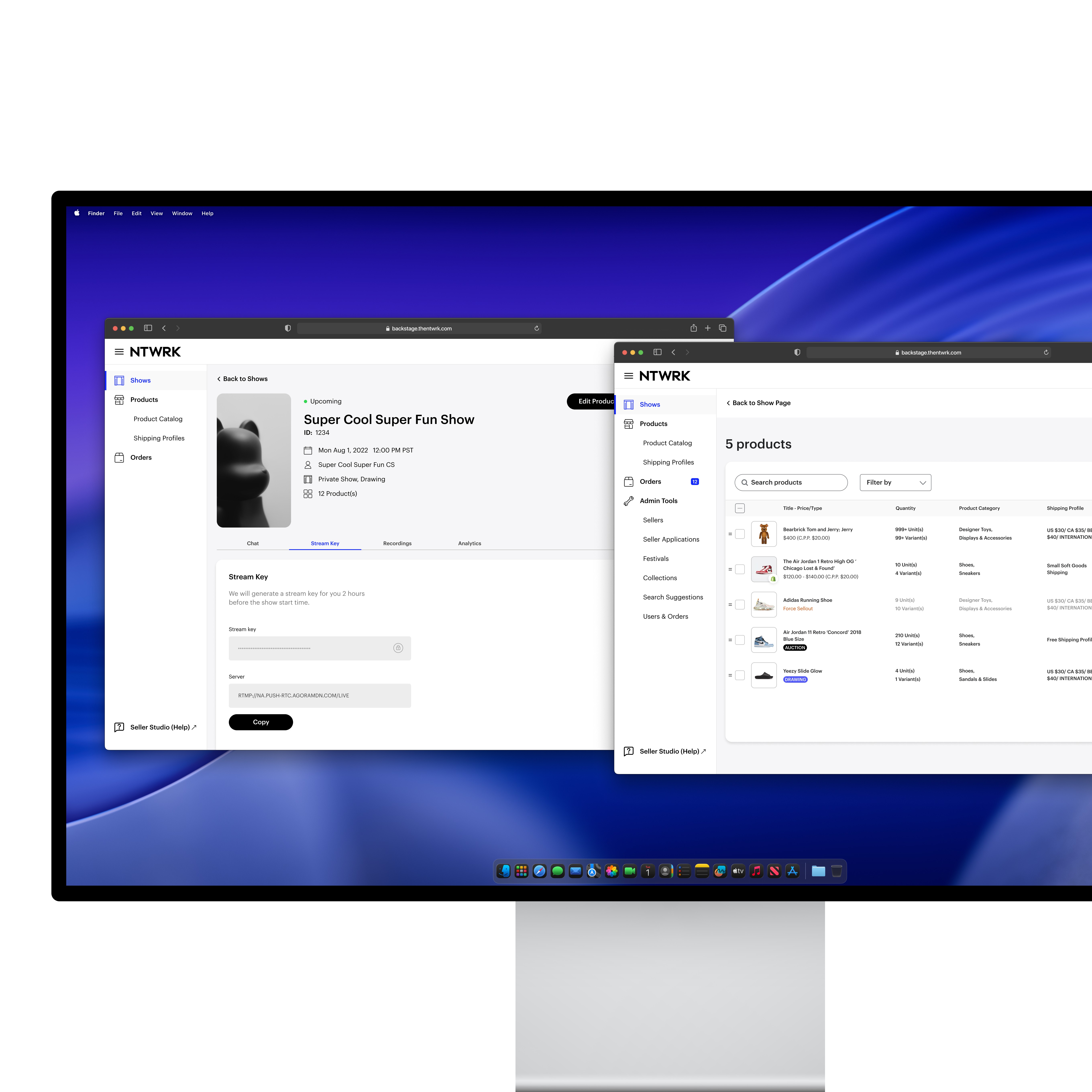 With the objective of expanding NTWRK’s marketplace, the NTWRK Selling Initiative was launched with the goals of platform self-containment and unlocking a new subset of sellers. Prior to this initiative, prospective sellers were required to apply through a third party and already have an existing Shopify store, creating a significant barrier to entry. Additionally, before Seller Dashboard, products could only be sold on NTWRK if they were added to a show, further limiting the marketplace. As a result, Seller Dashboard’s objective became a major undertaking: to improve the entire process of who sells, what is sold, and how products are sold on NTWRK.